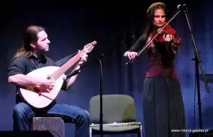 Najpierw zagrał zespół Żniwa. To duet łączący elementy folku, muzyki dawnej i współczesnej. Małżeństwo na scenie zaprezentowało utwory zagrane przy pomocy lutni, skrzypiec oraz fletu. Wspaniała muzyka, rytmiczne utwory i teksty piosenek pobudzające wyobraźnię pozwoliły przenieść się w świat starożytnych opowieści. Nieszczęśliwa miłość spowodowana wieloma sprzecznościami losu, intrygująca historia przetłumaczonej Belgijki, to tylko niektóre z utworów zaprezentowanych przez Lidię i Pawła Ulatowskich.