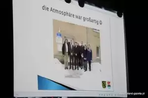 Po uroczystej akademii na niemieckich partnerów czekały upominki. Oczywiście nie zabrakło prezentów i od nich, a burmistrz Jens Krauße, wspólnie z tłumaczką - nauczycielką j. niemieckiego Danutą Kramek, podziękował za wspaniałe przywitanie i akademię, którą oglądał ze łzami w oczach – uczniowie dobrze mówią w j. niemieckim, moje polskie słownictwo ogranicza się do słówek związanych z jedzeniem i piciem - żartował i podkreślił, że cieszy go fakt , iż na krótką chwilę znowu udało mu się odwiedzić Malczyce. Pogratulował także Piotrowi Frankowskiemu wyboru na następną kadencję.