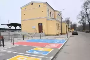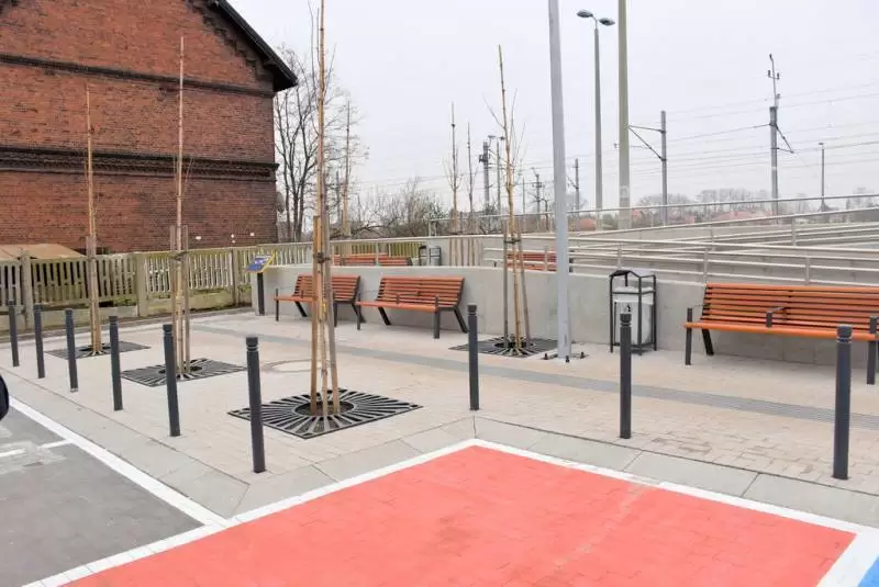 Po wschodniej stronie budynku powstał mini plac dworcowy z na nowo zaaranżowaną zielenią, małą architekturą (ławki, kosze, oświetlenie) oraz miejscami postojowymi dla osób z niepełnosprawnościami, rodzin z dziećmi oraz typu kiss&ride. Natomiast przy zachodniej elewacji parking dla samochodów oraz wiata rowerowa ze stojakami dla jednośladów. Obiekt jest bezpieczny, komfortowy i ma służyć mieszkańcom oraz podróżnym.