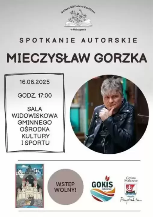 Serdecznie zapraszamy wszystkich miłośników literatury na spotkanie autorskie, które odbędzie się w poniedziałek, 16 czerwca, o godz. 17:00 w sali widowiskowej GOKiS Malczyce.