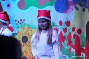 Następnie wystąpili aktorzy Teatru Blaszany Bębenek, który przedstawili spektakl pt.: „Świąteczne przygody ważniaka i spółki”, z morałem dotyczącym przyjaźni. Dzieci chętnie brały udział w przygotowanej inscenizacji.