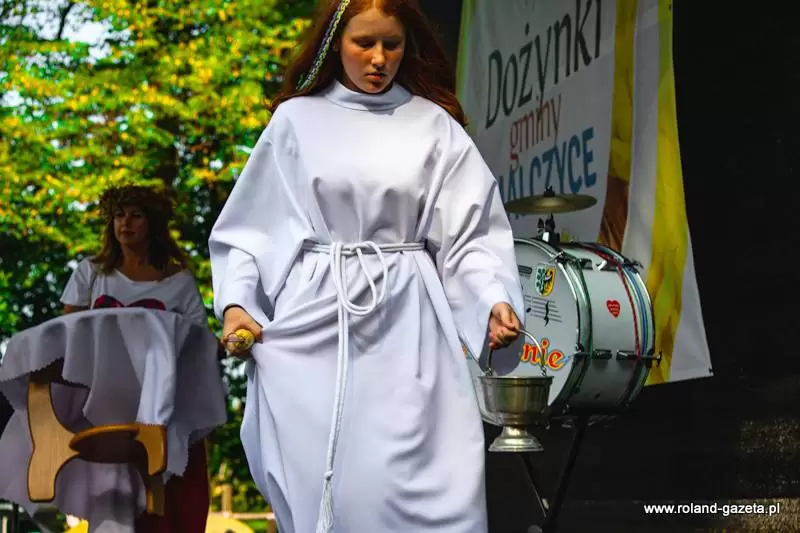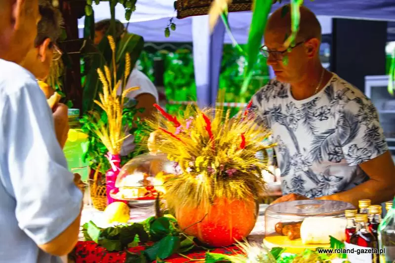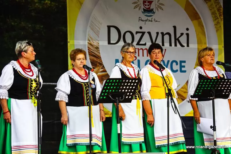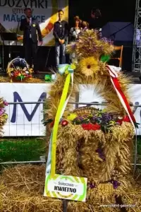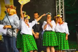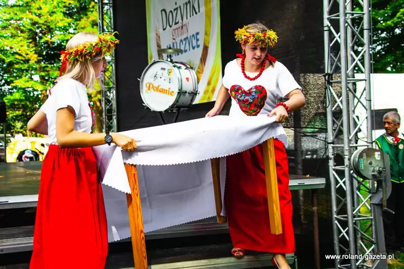 Tradycyjny obrzęd dożynkowy przygotował i poprowadził zespół „Polanie”. Nie mogło oczywiście zabraknąć dożynkowych przyśpiewek, przygotowanych przez zespół oraz tradycyjnego obtańcowania wieńca.