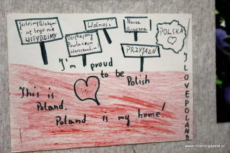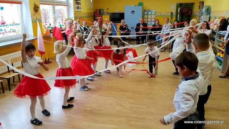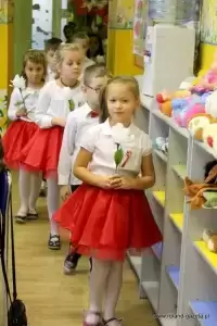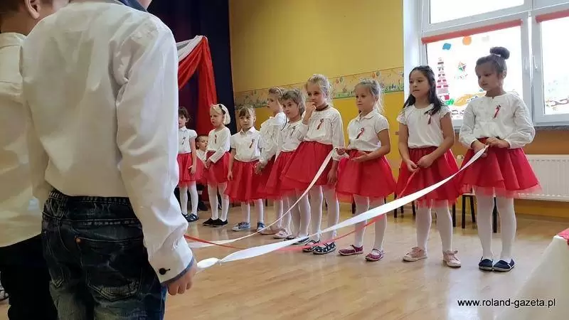 Kiedy w przedszkolu słuchano występów "Biedronek", reszta grup przedszkolnych udekorowała trawnik przed obeliskiem, pięknymi biało-czerwonymi papierowymi kwiatkami, było ich 100 sztuk.