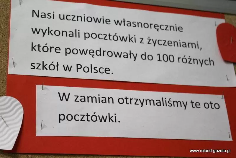 - Uczniowie przygotowali własnoręczne kartki wykonane w języku polskim, angielskim oraz niemieckim, które zostały wysłane do 100 szkół w kraju, w zamian otrzymując taką samą ilość. Na tablicy nie mamy jeszcze wszystkich pamiątek, zapewne są w drodze - mówi dyrektor SP Malczyce, mgr Marzena Łaziuk.