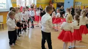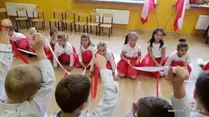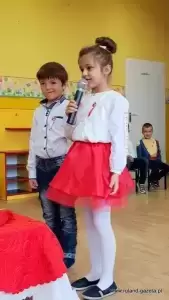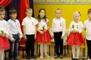 Przedszkolaki z grupy "Biedronki", pod bacznym okiem swojej wychowawczyni, przygotowały inscenizację poświęconą 100-leciu Odzyskania Niepodległości. Maluchy zaśpiewały też 4 zwrotki hymnu Polski i zatańczyły krakowiaka. Oczywiście nie mogło zabraknąć wiersza „Kto ty jesteś? Polak mały”.
