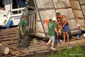 Na miejscu, tylko do jutra, można zapoznać się z nadodrzańską kulturą i techniką flisacką. Tratwa zbudowana w ramach Flisu Odrzańskiego 2024 przepłynie trasę 360 km.