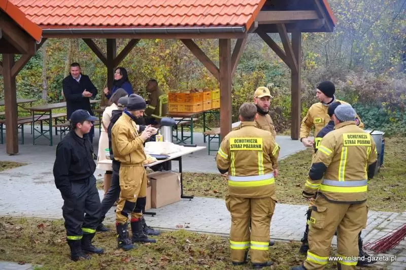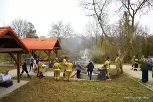 Na zewnątrz ochotnicy z jednostek OSP serwowali grochówkę, przygotowaną przez KGW z Rachowa, Chomiąży oraz Dębic i kiełbaskę z ogniska.
