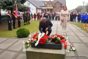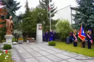 Delegacje złożyły wieńce pod obeliskiem poświęconym żołnierzom różnych narodowości, którzy w czasie II wojny światowej walczyli z nazistami o pokój i wolną Polskę. Uczczono tu również pamięć poległych i 2 Średzki Szczep Harcerski "Cztery Strony Świata" podniósł flagę narodową na maszt.