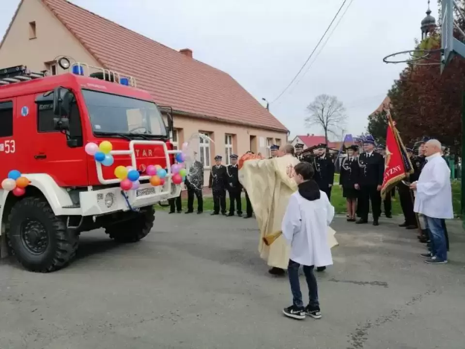 Przekazanie samochodu poprzedzone było odprawieniem mszy św. w intencji strażaków oraz poświęceniem pojazdu.