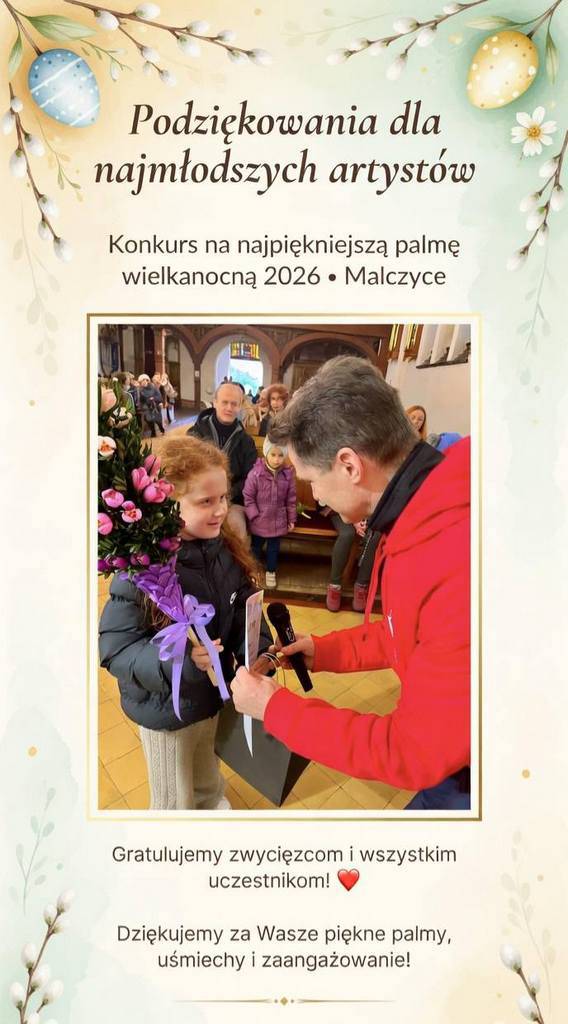 Niedziela Palmowa przywitała gminę "chłodnym deszczem i porywistym wiatrem", jednak to, co działo się podczas spotkania, stanowiło zupełne przeciwieństwo aury za oknem. Jak podkreślił Wójt Gminy Malczyce, Piotr Frankowski, mimo chłodu "serca naszych mieszkańców były pełne ciepła, uśmiechu i prawdziwie wielkanocnej radości".