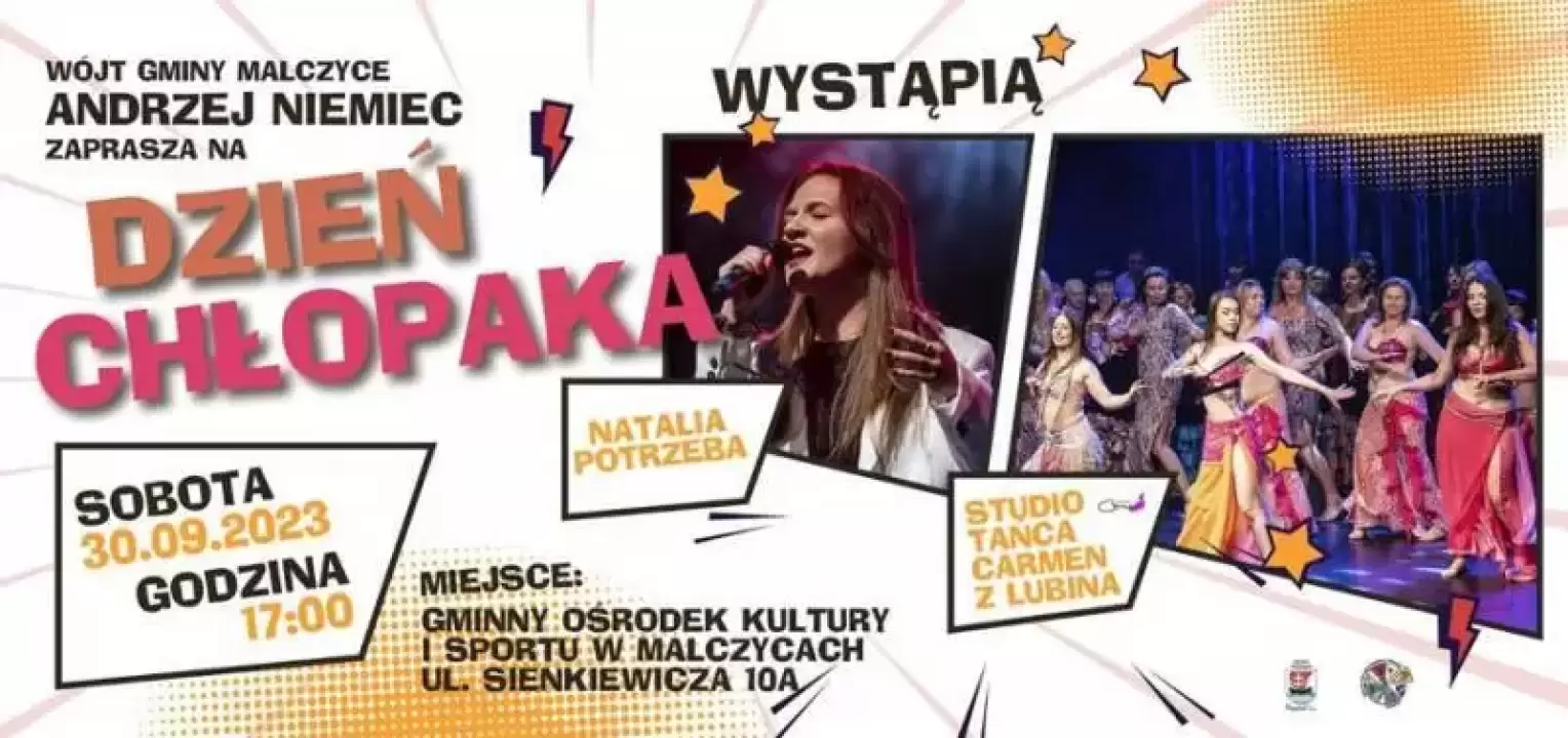 Z okazji Dnia Chłopaka, 30 września 2023 o godz. 17:00 na scenie Gminnego Ośrodka Kultury i Sportu w Malczycach, dla Pań i Panów wystąpią - wokalistka Natalia Potrzeba i tancerki ze Studia Tańca Carmen z Lubina.