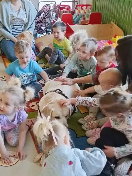 Żłobek Publiczny "Szczęśliwe Misie" w Malczycach odwiedziły labradorka Lucynka wraz ze swoją opiekunką Panią Anią! Dzieci były zachwycone, podekscytowane i pełne chęci do wspólnej zabawy.