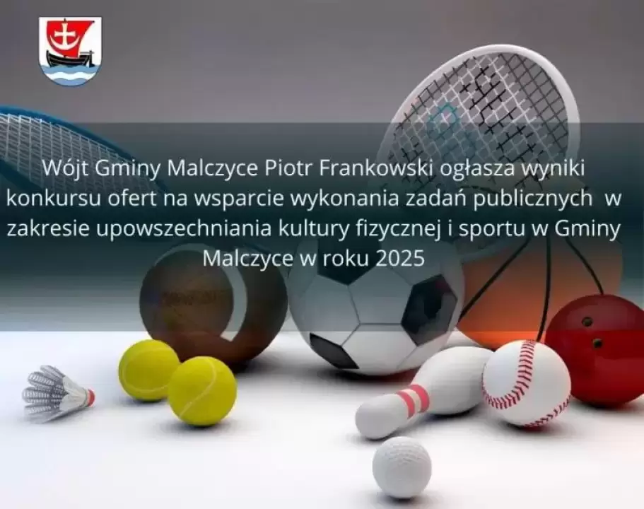 Zarządzenie nr 0050.40.2025 Wójta Gminy Malczyce z dnia 31marca 2025 r. w sprawie rozstrzygnięcia konkursu ofert na wsparcie wykonania zadań publicznych Gminy Malczyce w zakresie upowszechniania kultury fizycznej i sportu w roku 2025.