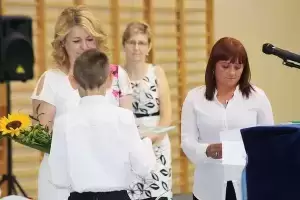 Wraz z rokiem szkolnym, pożegnano nauczycielkę matematyki panią Agatę-Rubin, nauczyciela j. angielskiego Dariusza Kuriatę oraz księdza Bogusława Kapicę. Pani dyrektor wręczyła im kwiaty oraz serdeczne podziękowania za współpracę i życzyła dalszych sukcesów zawodowych. Wielu nauczycieli nie kryło łez wzruszenia żegnając swoich kolegów. Natomiast Rada Rodziców złożyła serdeczne podziękowania za trud włożony w wychowanie i edukację wszystkich dzieci.