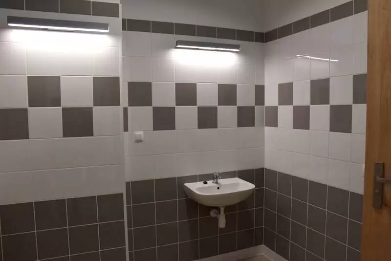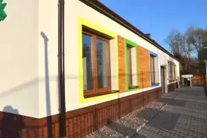 Budynek 2-oddziałowej placówki z 30 miejscami opieki dla dzieci w wieku od 1-3 lat, o powierzchni użytkowej 224,47 m² został wyposażony w takie pomieszczenia jak: 2 sale dla dzieci z łazienkami, szatnia, toaleta dla personelu oraz toaleta dla osób z niepełnosprawnościami, pokój socjalny, szatnia dla personelu, gabinet dyrektora, kuchnia, zmywalnia, pomieszczenia na bieliznę czy wózkarnia.