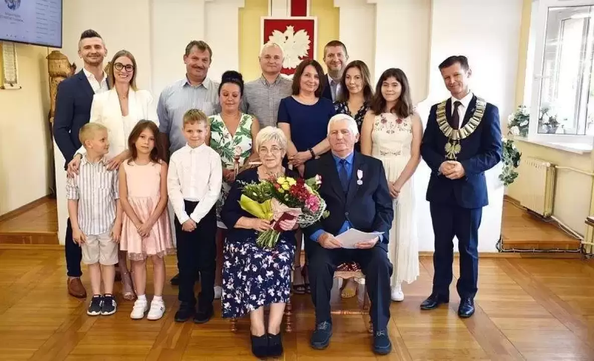Państwo Zielińscy mają 4 dzieci, 9 wnuków i 2 prawnuków. W uroczystości towarzyszyli im najbliżsi, jubilaci wznieśli toast, otrzymali kwiaty oraz słodki upominek.