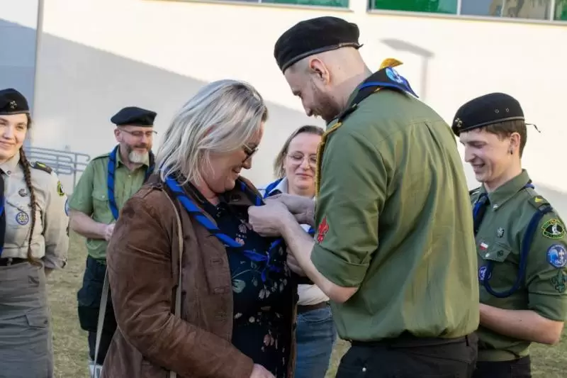 Nie zabrakło również podziękowań dla osób oraz instytucji, które przez lata wspierały działalność szczepu. Szczególne słowa uznania skierowano m.in. do Burmistrza Miękini, Uniwersytetu Trzeciego Wieku, księdza proboszcza Waldemara Kocendy, pani dyrektor Zespołu Szkolno-Przedszkolnego w Miękini czy vice dyrektor Zespołu Szkolno-Przedszkolnego w Lutyni, których pomoc była nieoceniona w rozwoju harcerstwa na terenie gminy.