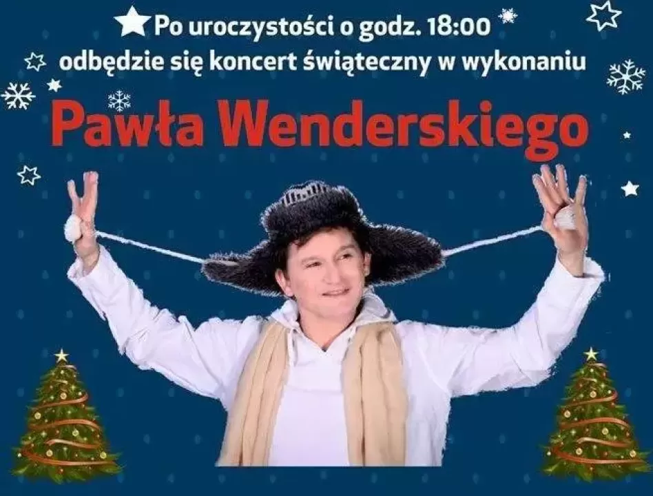 Po uroczystości, o godzinie 18:00, odbędzie się świąteczny koncert Pawła Wenderskiego.