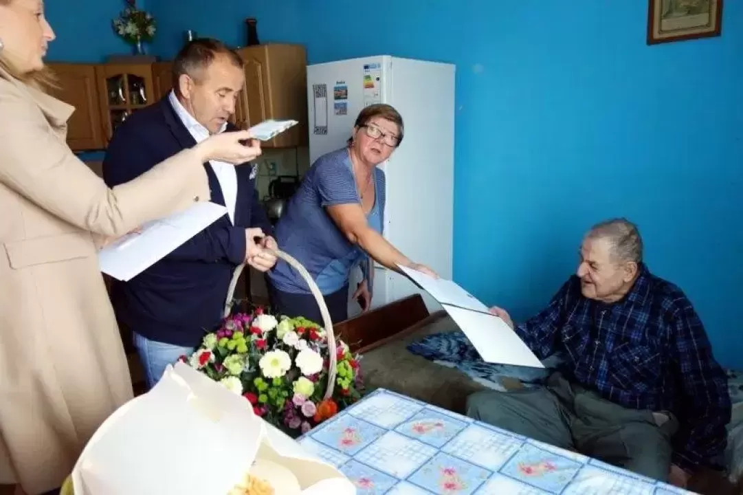 Wójt Jan Marian Grzegorczyn wraz z Sekretarzem Gminy Małgorzatą Dyrdą, odwiedzili 22 października Pana Michała Micała z okazji setnych urodzin.
