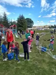 W trakcie wydarzenia najmłodsi chętnie wykonywali sobie brokatowe tatuaże, kolorowe warkoczyki, a także puszczali wielkie mydlane bańki.