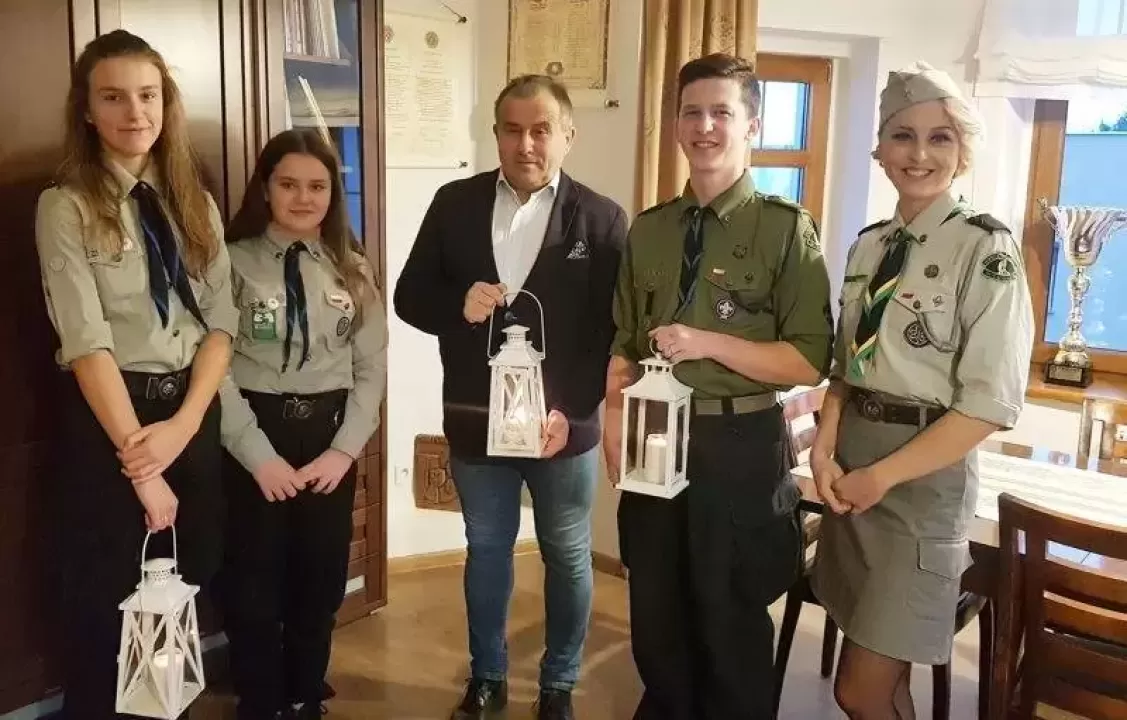 Wieczny ogień dotarł już do Gminy Miękinia. Harcerze ze środowiska miękińskiego, wraz z członkiem średzkiej komendy hufca ds. kontaktów z samorządami, przekazali dziś rano na ręce wójta Betlejemskie Światełko Pokoju.