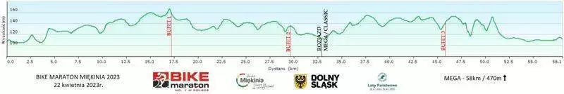MEGA, pełniący od tego sezonu rolę najdłuższego dystansu Bike Maratonu, liczy sobie prawie 60 km, a przewyższenia sięgną prawie 500 m. Niby płasko i łatwo, ale jednak już pierwsze spojrzenie na profil trasy sugeruje, że nie będzie to spacer ani łatwy wyścig. Tradycyjna rozgrzewka przed górskimi edycjami Bike Maratonu odbędzie się więc już w najbliższą sobotę!