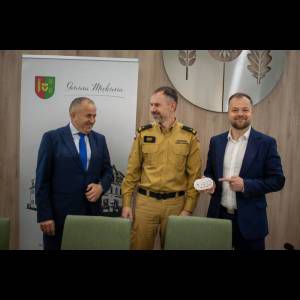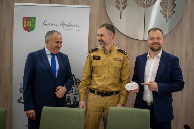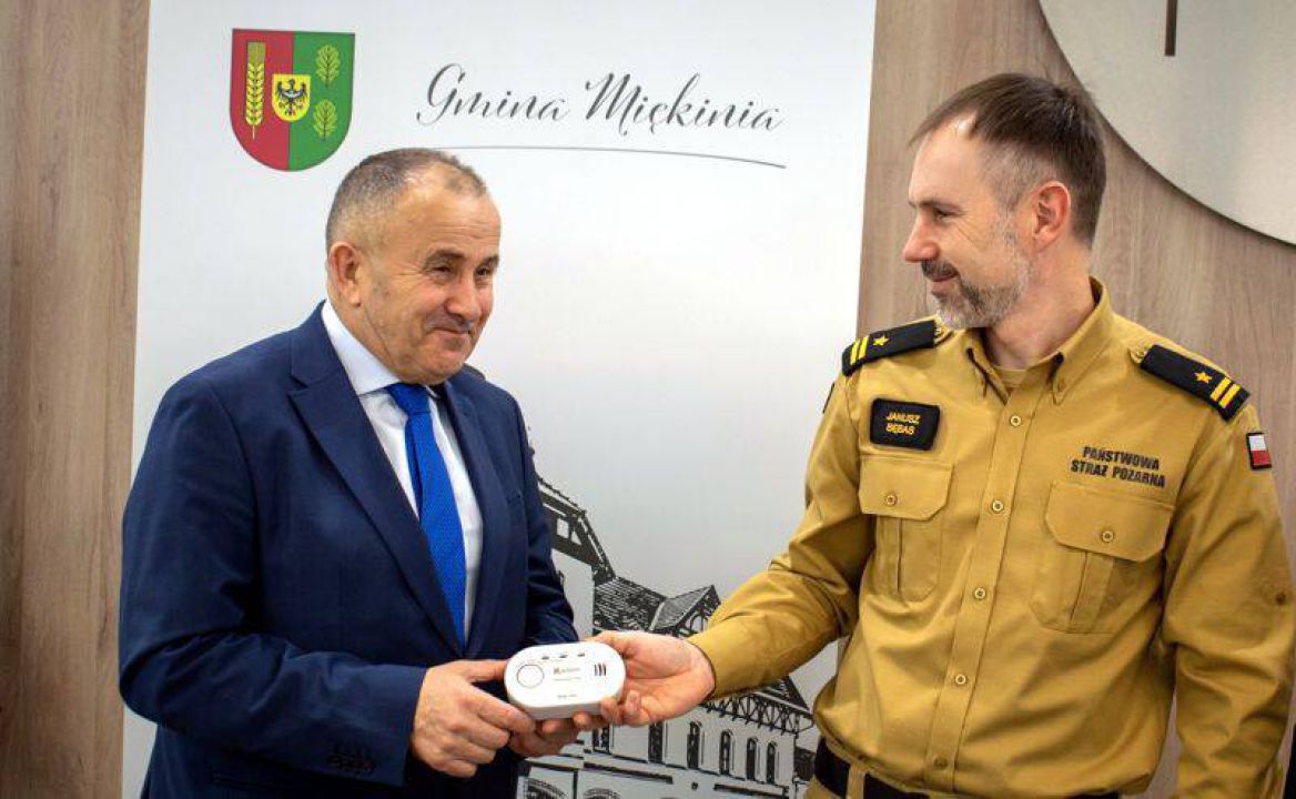 Dziś, przedstawiciel Powiatowej Państwowej Straży Pożarnej w Środzie Śląskiej, mł. bryg. Janusz Bębas, przekazał na ręce burmistrza Jana Mariana Grzegorczyna oraz Przewodniczącego Rady Miejskiej w Miękini Adama Zaniewskiego, czujki dymu oraz czujki czadu.