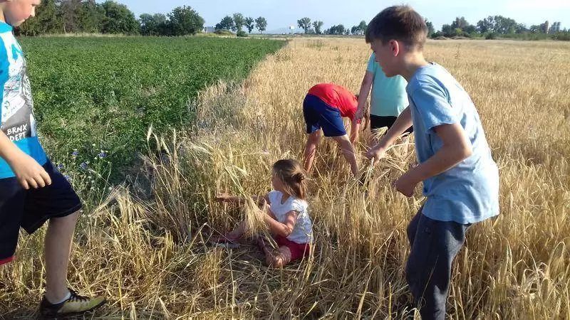 Sołtys wsi udostępnił dzieciom swoje pole uprawne, z którego mogą czerpać produkty potrzebne do wykonania wieńca. Do dyspozycji mają różne rodzaje zbóż.