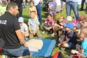 Przygotowano również warsztaty z pierwszej pomocy oraz wiele zabaw i gier dla najmłodszych. Były ogromne bańki mydlane oraz zabawy z animatorami. Nie zabrakło oczywiście poczęstunku.