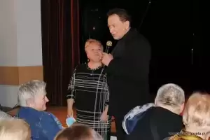 Wczoraj w Samorządowym Ośrodku Kultury w Miękini Borkowski przed licznie zgromadzoną publicznością zaprezentował swój recital kabaretowy. Aktor opowiedział zabawne historie i anegdoty ze swojego życia, które przeplatał tematycznymi piosenkami. Było ciekawie, widowiskowo, a co najważniejsze bardzo wesoło.