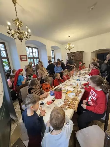 Kreatywne warsztaty dla dzieci były pięknym przykładem tego, jak wspólna praca zbliża ludzi. Najmłodsze talenty z wielkim zapałem dekorowały pierniczki, pieczone przez Wojnowickich mistrzów kuchni, tworząc niepowtarzalne słodkości. Dzieci z radością przygotowywały też ozdoby choinkowe, które zawisną na sąsiedzkim, świątecznym drzewku podarowanym społeczności przez Nadleśnictwo w Mrozowie.