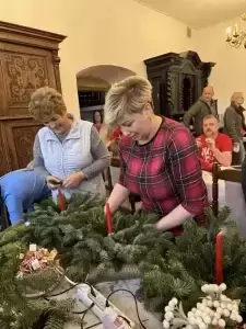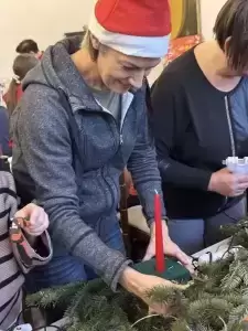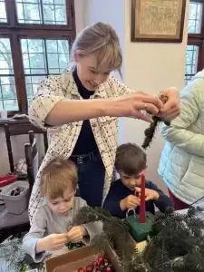 Nie zabrakło również zajęć dla starszych uczestników. Warsztaty tworzenia stroików świątecznych, prowadzone przez Olgę Kunysz z Coś Pięknego Barbara Chojcan, były okazją do nauki, inspiracji i wymiany pomysłów. Dzięki praktycznym poradom i pomocy prowadzącej, każdy mógł stworzyć wyjątkową dekorację, która stanie się piękną ozdobą domu na święta.