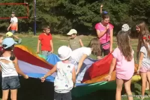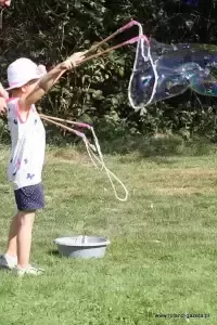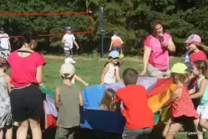 Na uczestników czekało sporo atrakcji. Panie animatorki przygotowały dla najmłodszych wiele pomysłowych zabaw. Były ogromne bańki mydlane, możliwość zabawy "w wędkarzy". Odbył się także konkurs plastyczny pt. "Moje wakacje" oraz gry i zabawy grupowe.