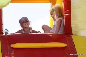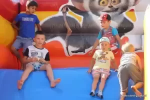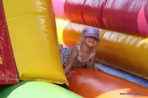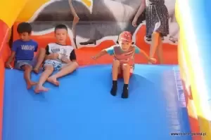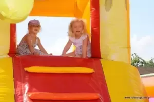 Dzieci figlowały na dmuchanych zamkach, które dzięki swojej różnorodności pozwoliły na zabawy także najmłodszym. Nieco bardziej odważni mieli okazję zobaczyć Wilkszyn z góry, dzięki trampolinie, na której jedni raczej spokojnie unosili się nad ziemią, a inni fikali koziołki w każdy możliwy sposób. Z kolei dla miłośników sportów wyczynowych Ochotnicza Straż Pożarna rozstawiła ściankę wspinaczkową.