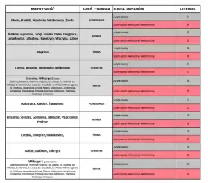 Przedstawiamy Państwu harmonogram odbioru zaległych odpadów w ramach wystawki krawężnikowej frakcji: zużyte opony (z wyłączeniem rolniczych i ciężarowych) oraz sprzętu elektrycznego i elektronicznego.