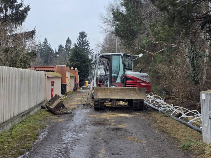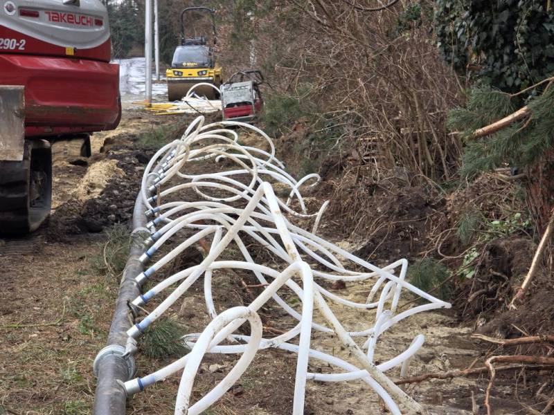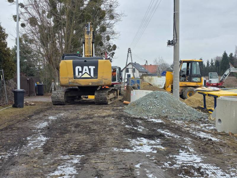 Mimo trudnych warunków atmosferycznych trwają intensywne prace związane z budową sieci kanalizacji sanitarnej w miejscowości Mrozów, realizowane w ramach dużego projektu infrastrukturalnego na terenie Gminy Miękinia. Obecnie roboty prowadzone są na ulicy Bolesława Chrobrego, gdzie powstaje nowa infrastruktura kanalizacyjna.