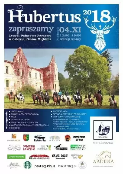 Święto myśliwych, leśników i jeźdźców odbędzie się 4 listopada na terenie zespołu pałacowo - parkowego w Gałowie (w gminie Miękinia).