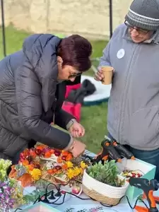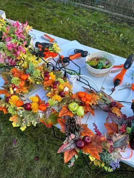 Wielkim zainteresowaniem cieszyły się warsztaty jesienne prowadzone przez Panią Basię z Coś Pięknego - Barbara Chojcan, podczas których mieszkańcy wspólnie tworzyli wianki z jesiennych darów natury.
