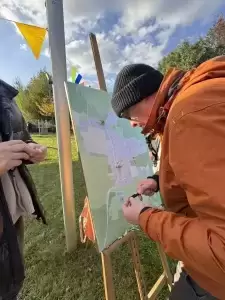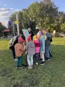 Ognisko oraz wieczorne kino plenerowe dla najmłodszych dodatkowo umiliły czas wszystkim uczestnikom, a wspólna zabawa przy mapie Sołectwa Wojnowice pozwoliła na lepsze poznanie sąsiadów i sąsiadek.
