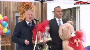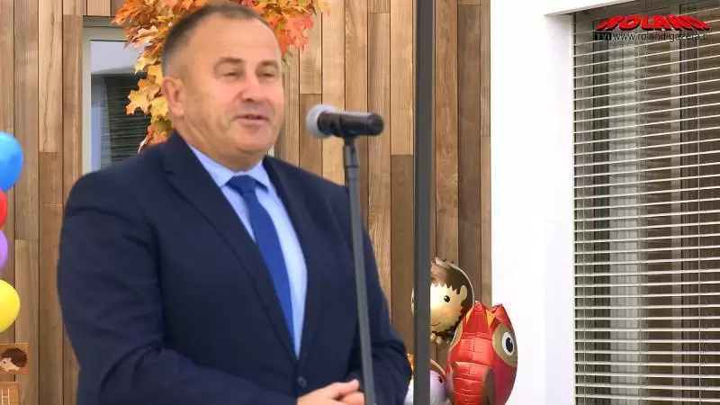 W towarzystwie zaproszonych gości, rodziców i dzieci wójt Jan Marian Grzegorczyn uroczyście otworzył wczoraj nowy budynek żłobka i przedszkola w Miękini.