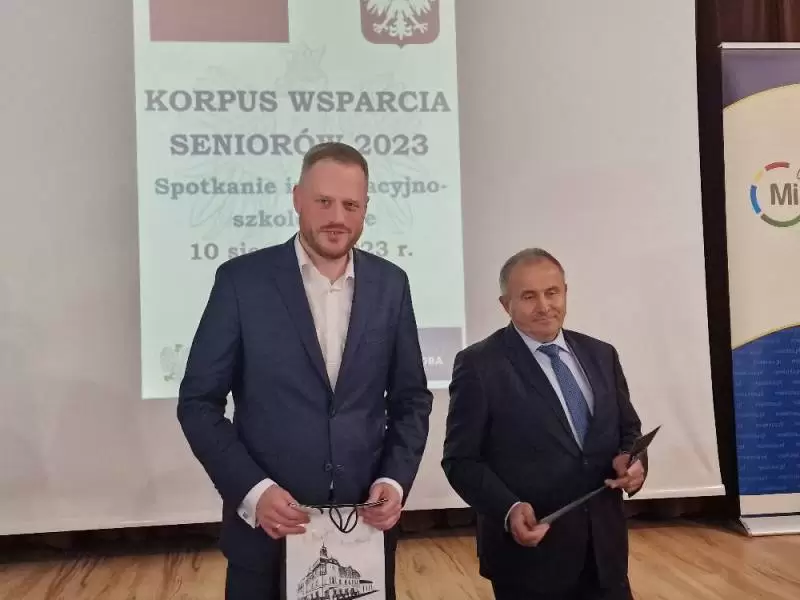 Realizacja zadania wspierającego seniorów jest możliwa dzięki pozyskanemu przez gminę dofinansowania z Ministerstwa Rodziny i Polityki Społecznej w kwocie 27 914 złotych. Wartość zadania wyniosła 34 941,60 złotych. Wczoraj w sali widowiskowej Samorządowego Ośrodka Kultury w Miękini przekazano opaski seniorom. Przekazanie połączone było ze szkoleniem, jak prawidłowo z nich korzystać. Szkolenie przeprowadził Mateusz Godka z firmy Sidly, która dostarczyła opaski.