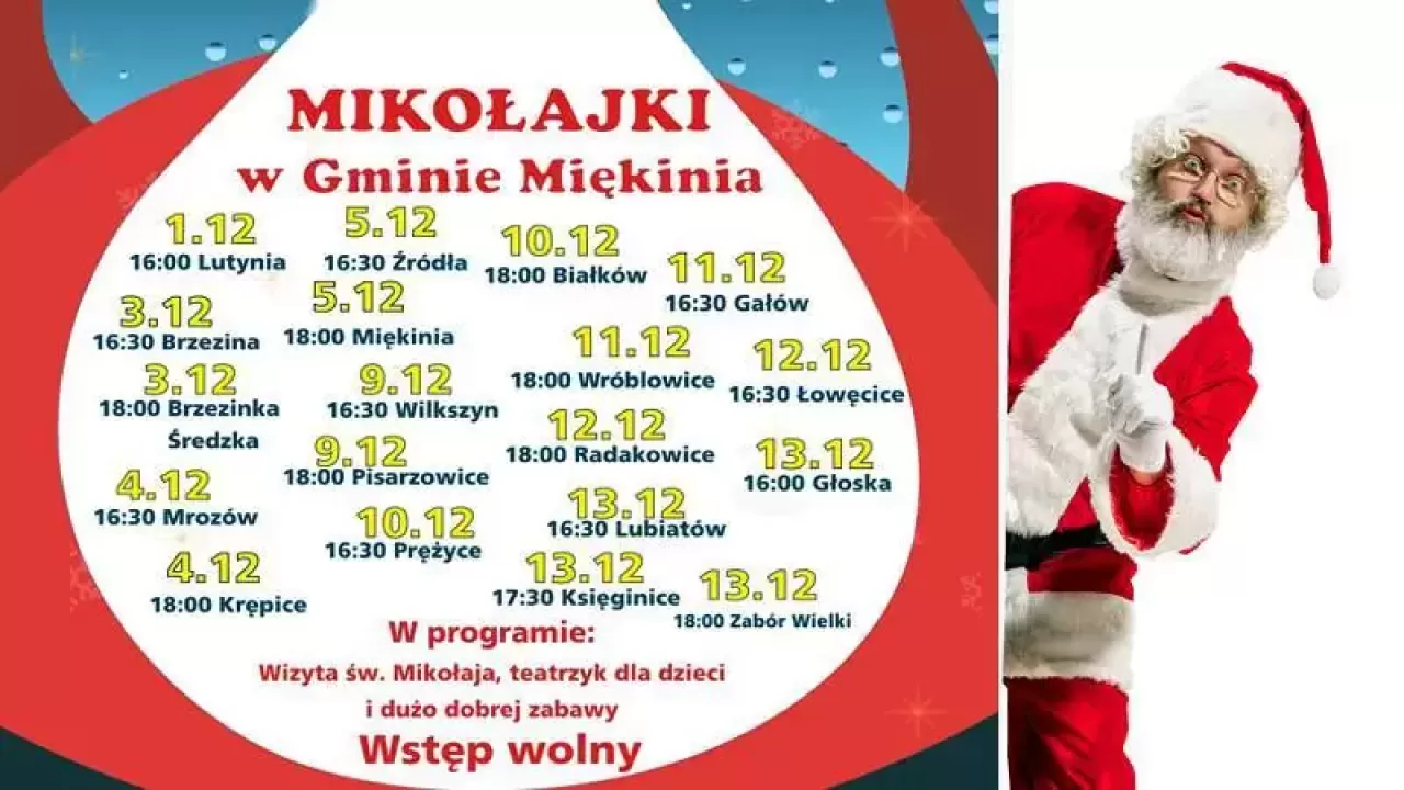 Mikołajki w gminie Miękinia - terminy spotkań w świetlicach wiejskich