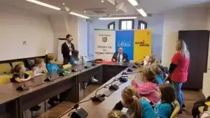 Padło wiele trudnych pytań nie tylko o pracę na stanowisku burmistrza, ale również ulubioną potrawę, kolor, zwierzęta domowe, a nawet o to, ile burmistrz ma lat. Dzieci dowiedziały się o tym, że praca burmistrza to trudne zadanie, odwiedziły również Biuro Obsługi Mieszkańca, poznały także miejsce, gdzie można otrzymać nowy dowód osobisty.