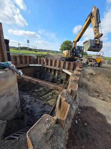 W ramach inwestycji pn. „Budowa nowej oczyszczalni ścieków wraz z budową infrastruktury wodno-kanalizacyjnej w Gminie Miękinia”, realizowanej przez firmę Inżynieria Rzeszów S.A., prowadzone są prace związane z modernizacją tłoczni ścieków w miejscowości Mrozów.