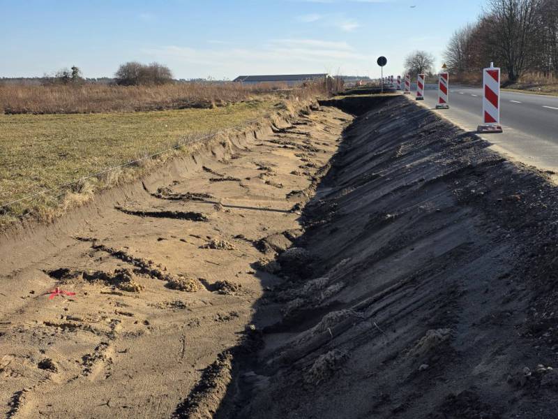 Trwa rozbudowa drogi gminnej 104910D w Miękini polegająca na budowie chodnika i ścieżki rowerowej przy ulicy Wrocławskiej w stronę Biedronki.
