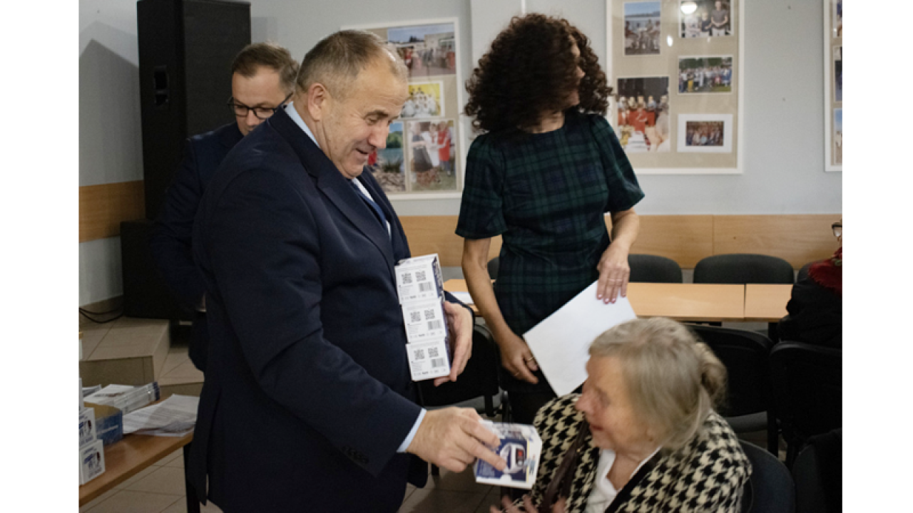 Podczas spotkania opaski bezpieczeństwa zostały przekazane 35 seniorom z terenu gminy Miękinia.