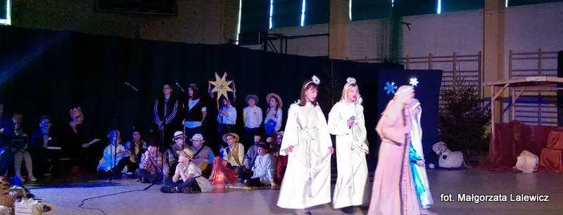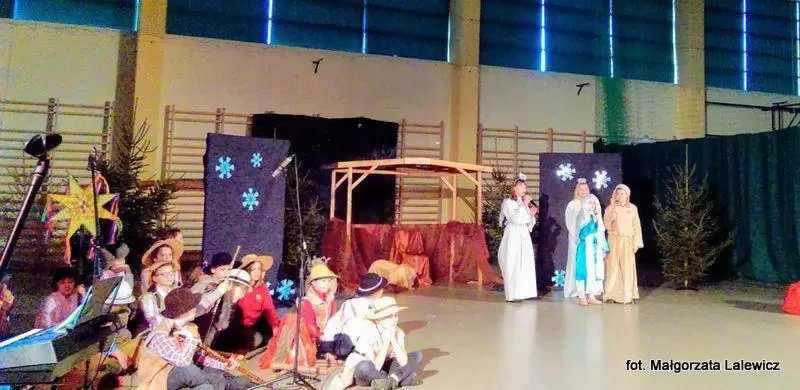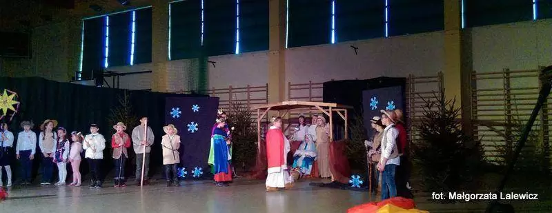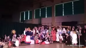Uroczystość zakończyła się na hali widowiskowo-sportowej. Tam odbyły się jasełka i wspólne kolędowanie.