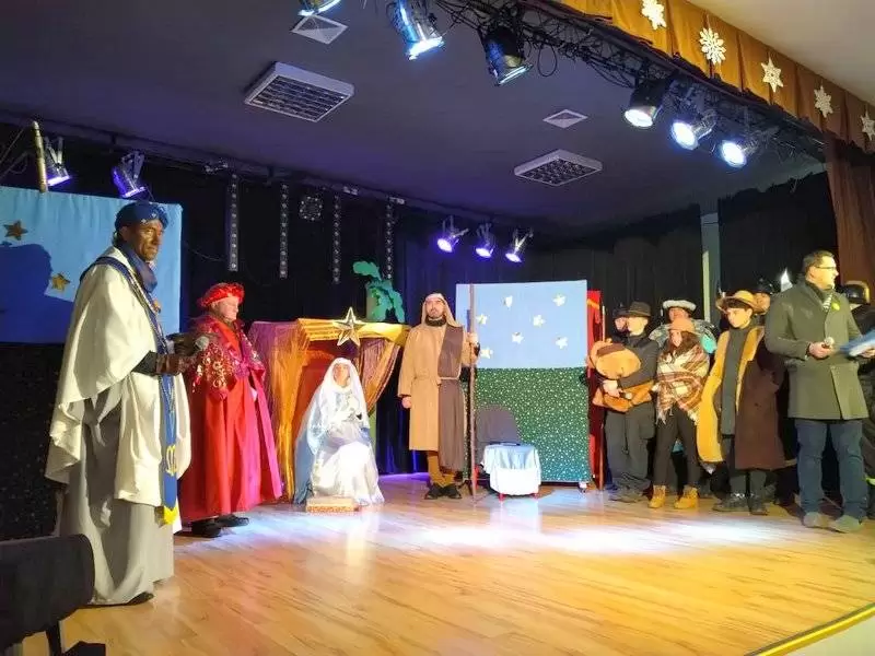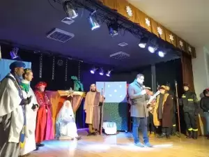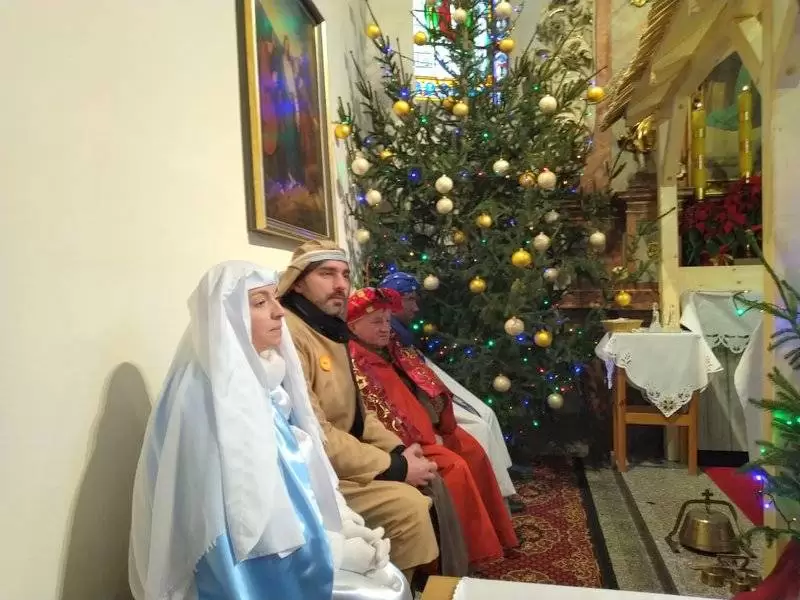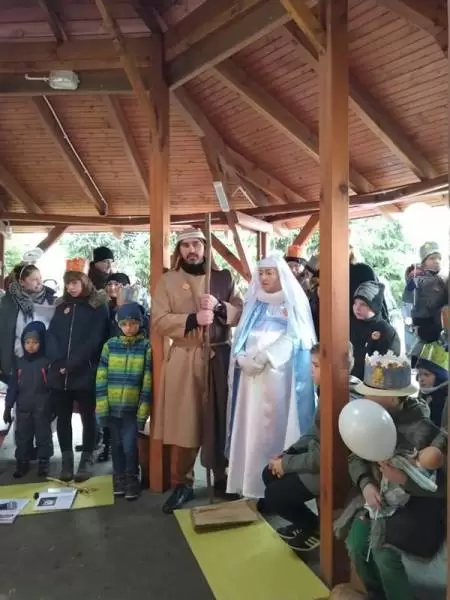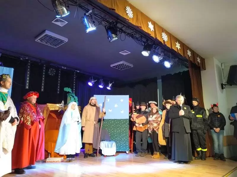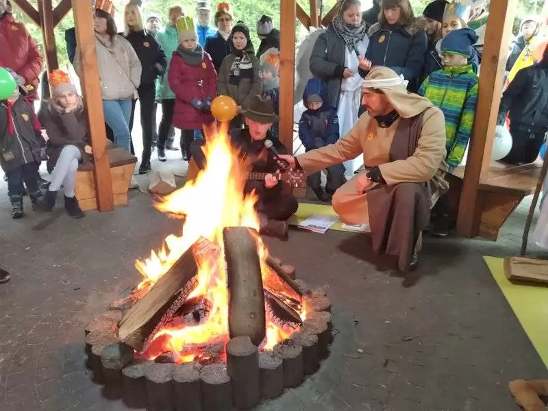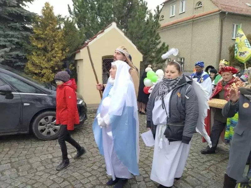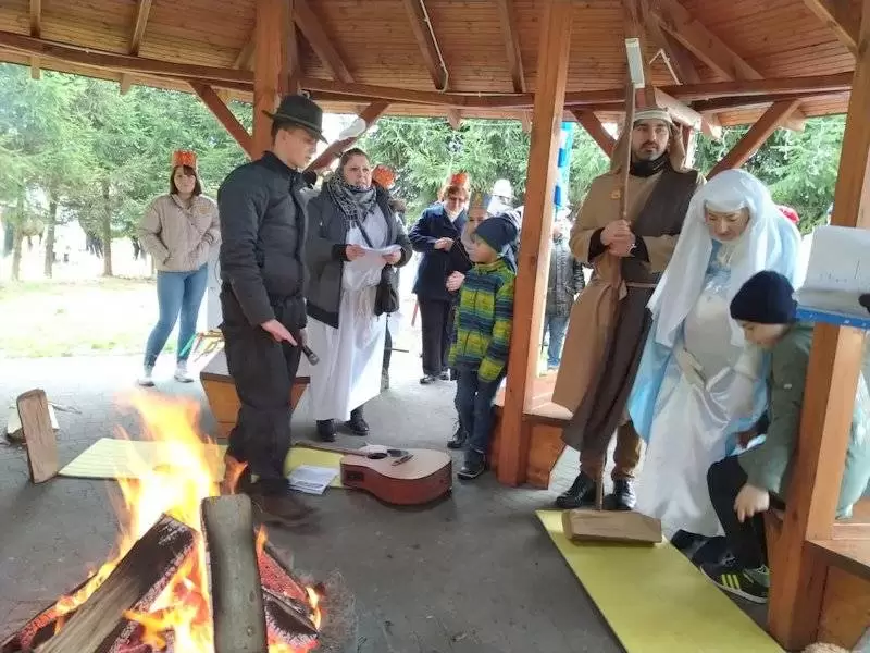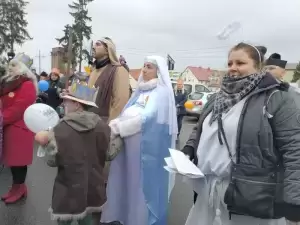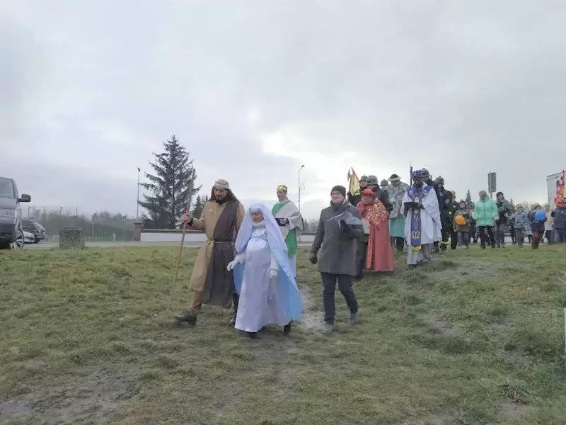 Po drodze odegrane zostały krótkie scenki obok urzędu gminy, które przedstawiały spotkanie króla Heroda z trzema mędrcami ze Wschodu. Następnie wszyscy udali się do szopy, w której harcerze w roli pasterzy rozpalili ognisko i ugościli Maryję i Józefa z dzieciątkiem.