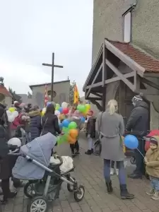 Orszak Trzech Króli w Miękini rozpoczął się mszą świętą o godzinie 11:00. Zaraz po mszy orszak udał się w kierunku Samorządowego Ośrodka Kultury.
