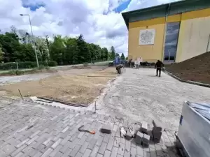 Postęp prac przy budowie kompleksu sportowo-rekreacyjnego w Miękini